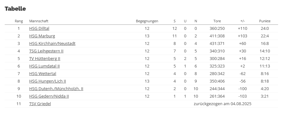 Damit rangiert Marburg vor den entscheidenden Spielen gegen die HSG Kirchhain/Neustadt (22.02.) und die HSG Dilltal (07.03.) auf Rang 2.